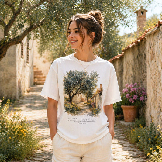Path of Life - Mediterranean Women's T-Shirt - Bible Verse from Psalm 16:11