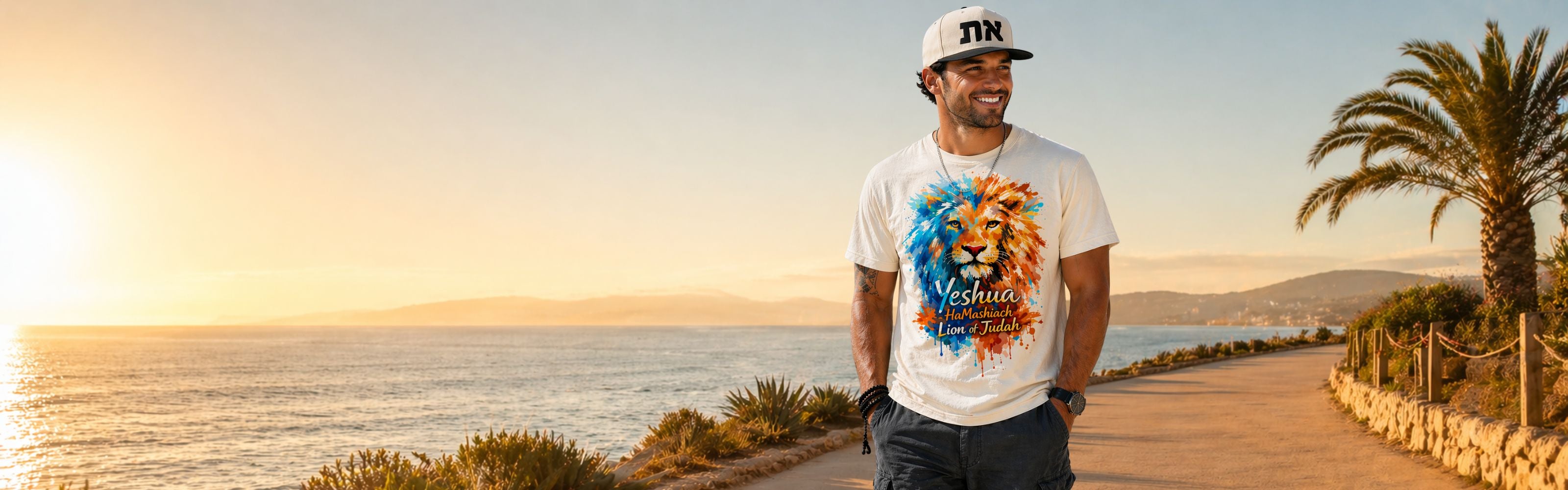 Yeshua Shield - Embroidered Lion Design - Flat Bill Cap