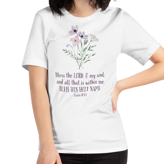 Flower Design with Bible Verse Ps. 103,1 | Women's T-Shirt | 100% Cotton