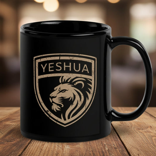 Yeshua, Shield of Faith – Black Ceramic Mug